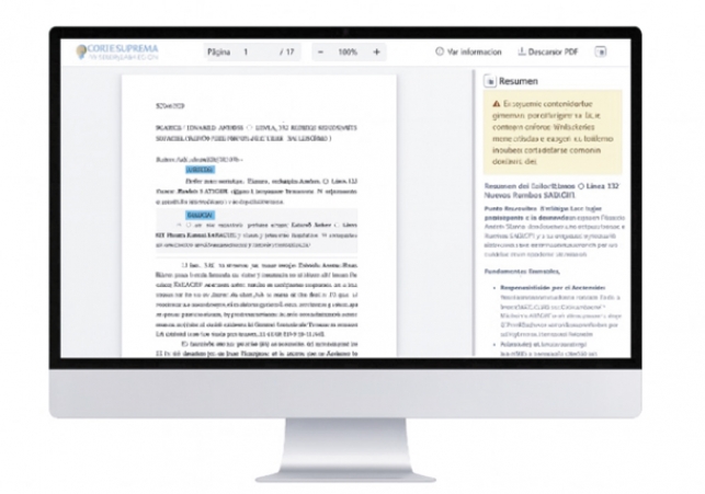 La Dirección de Sistemas de la Corte Suprema de Justicia de la Nación implementó una nueva forma de visualizar las sentencias de los tribunales federales y nacionales publicadas en el sitio de la Corte. El nuevo visor mejoró la visibilidad y presentación de los fallos y, además, incorpora la opción de generar automáticamente un resumen con inteligencia artificial.