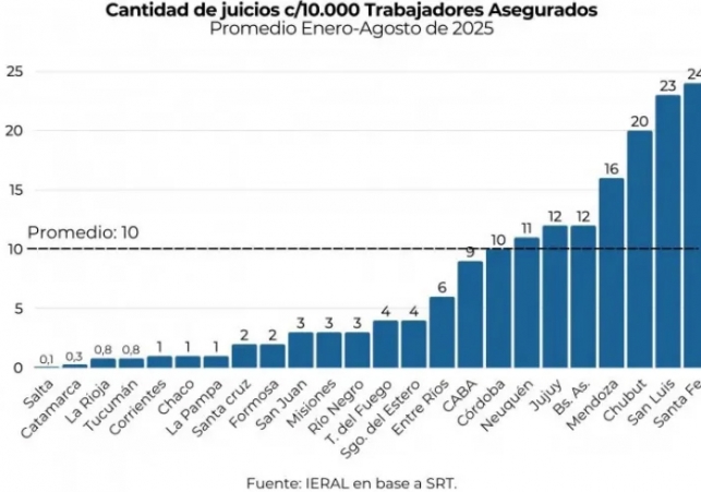 La estadística es contundente. San Luis registra 23 juicios por cada mil asalariados, sólo detrás de Santa Fe, que encabeza el ranking con 24. El contraste es drástico respecto de otras jurisdicciones: Salta, por ejemplo, registra 0,1 demandas cada mil trabajadores. La heterogeneidad, así, se transforma en un factor que distorsiona el costo laboral y la previsibilidad para quienes invierten o generan empleo.